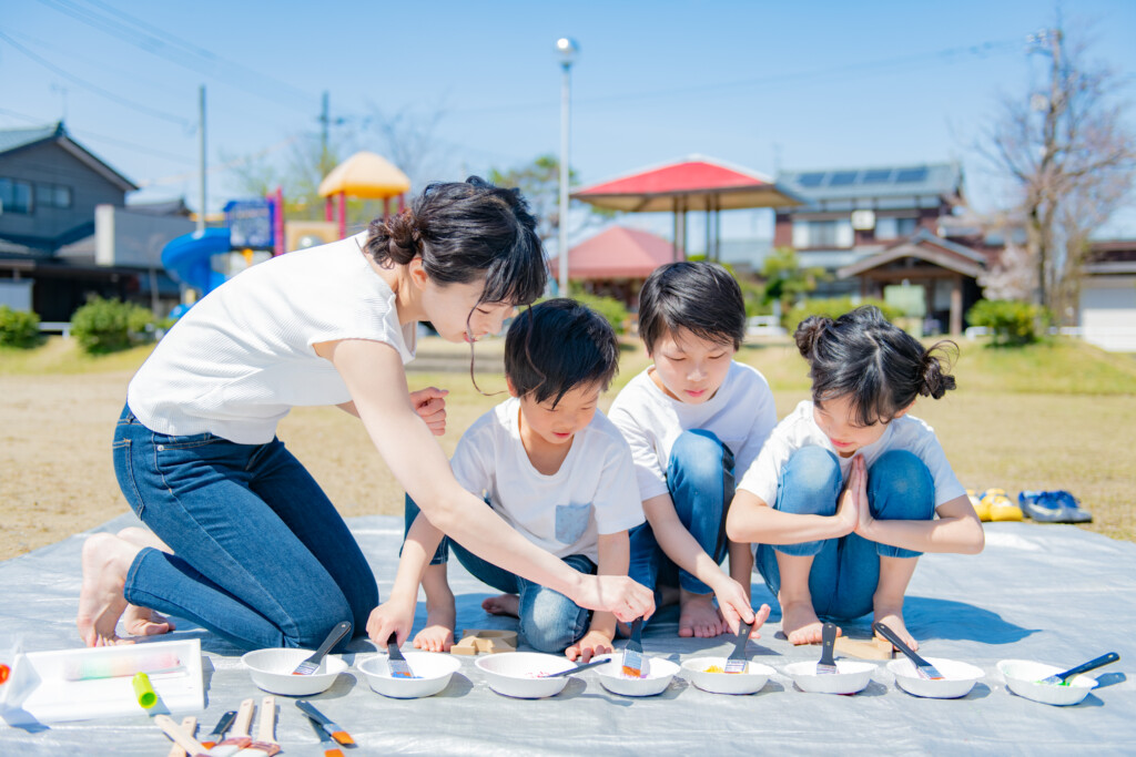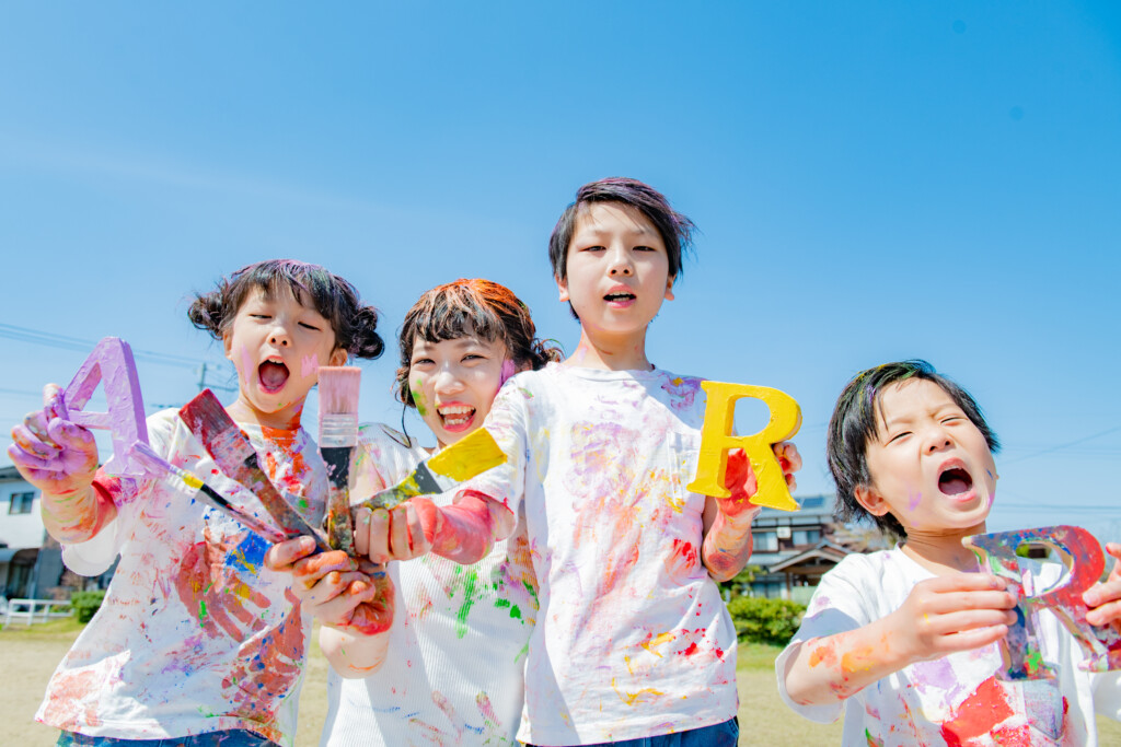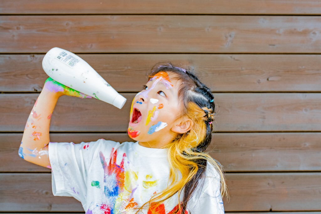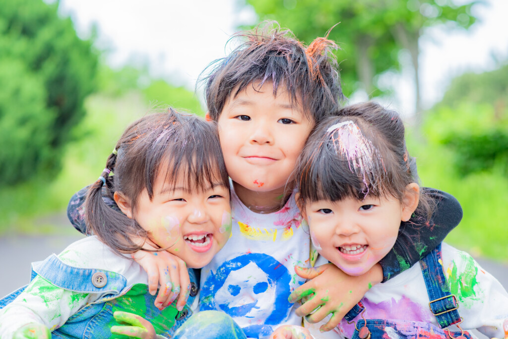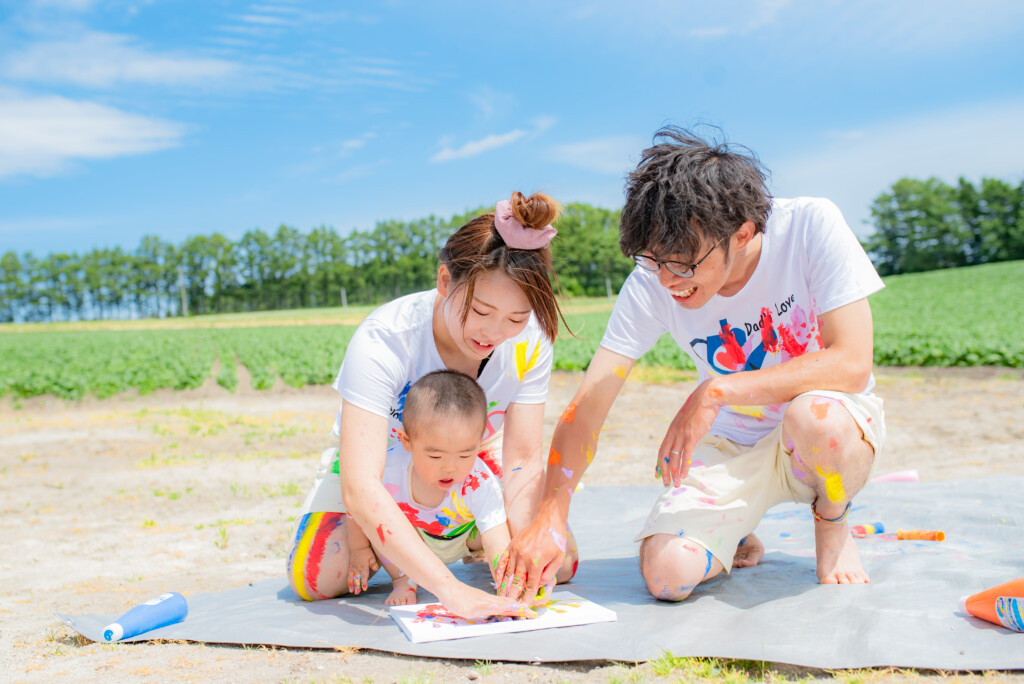 使用する絵の具について、安全性が高い、”アレルギー成分の入っていない絵の具”を使用し、手で触って遊ぶ専用のフィンガーペイント絵の具を使用します。肌についた絵の具はお湯で流すとさっと落ちます♪小さなお子様が、万が一口に入れてしまっても安心ですので、小さなお子様から参加できます。