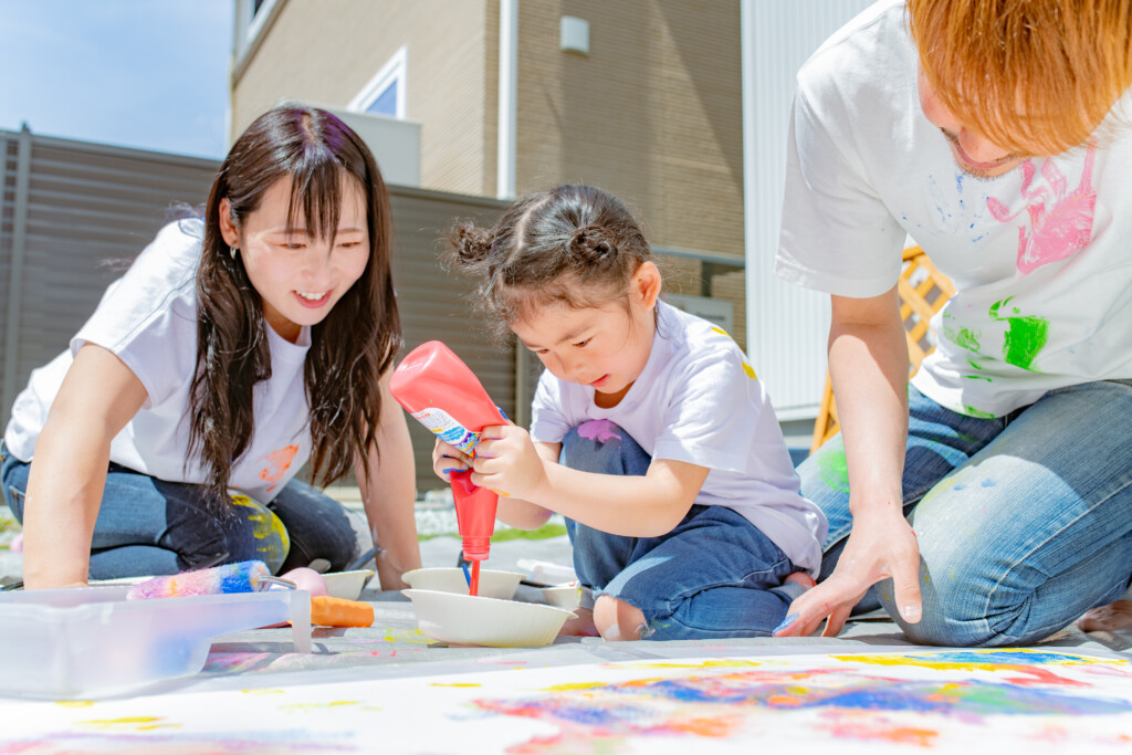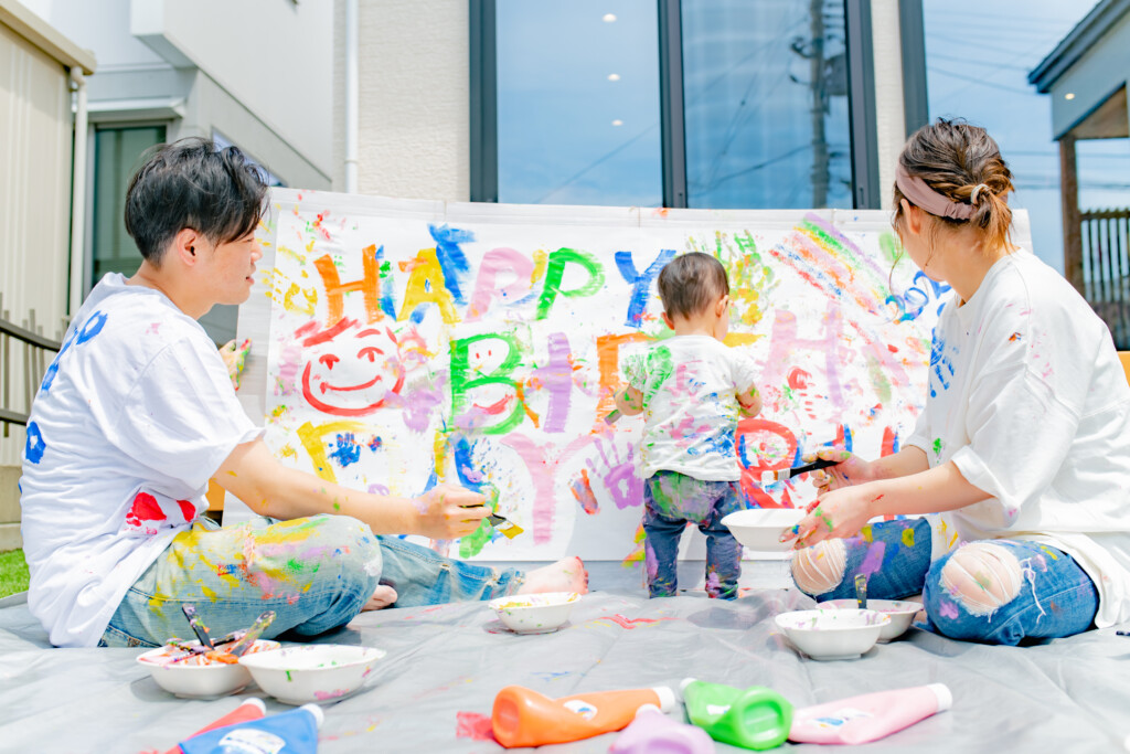 家の壁や床などに、絵の具がついた場合、基本的には水で落ちますが、素材によっては落ちない場合もございます。