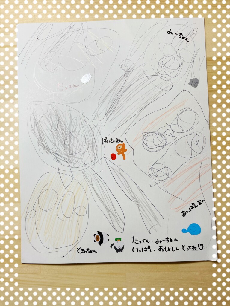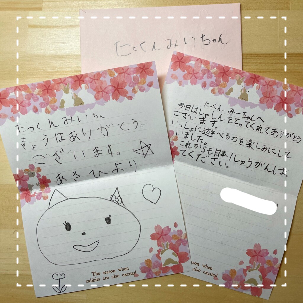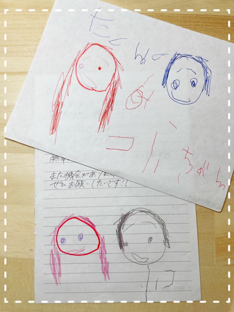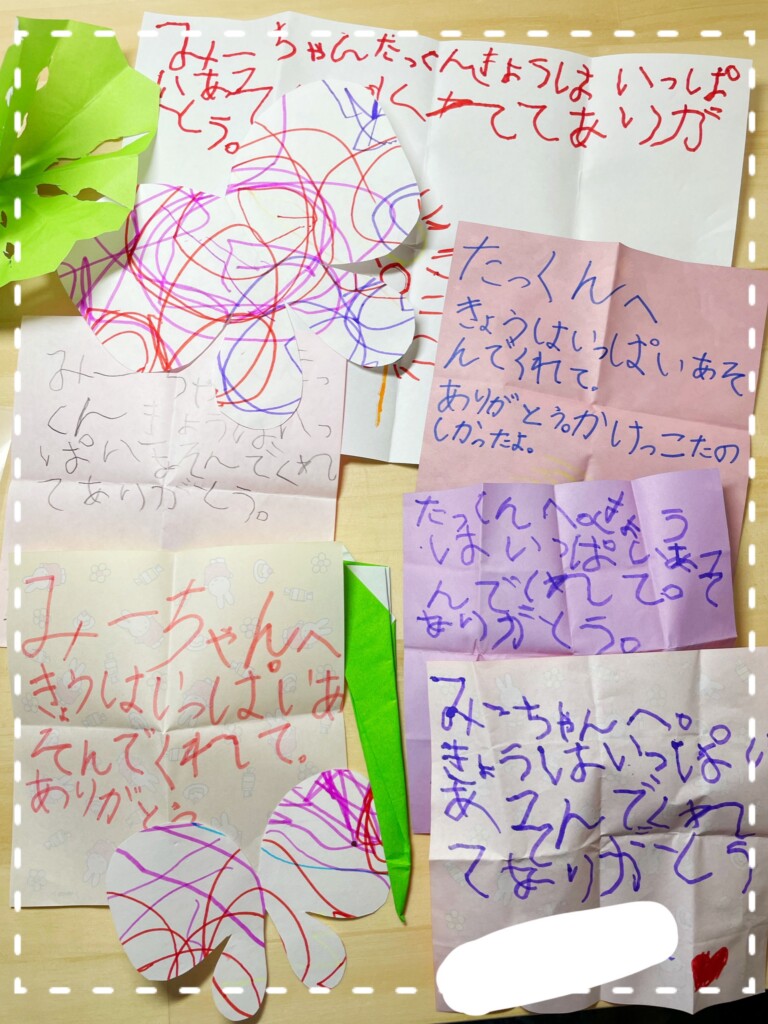 たっくんとみーちゃんに「描いてきたよ」とたくさんのお手紙や絵をもらいました♪