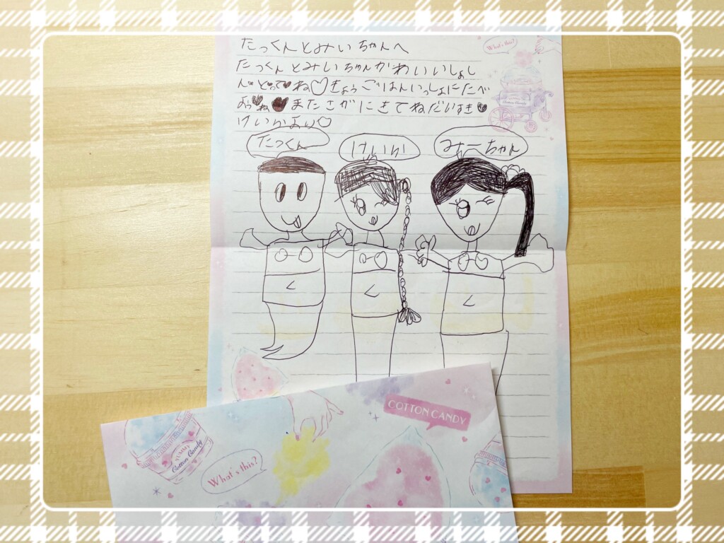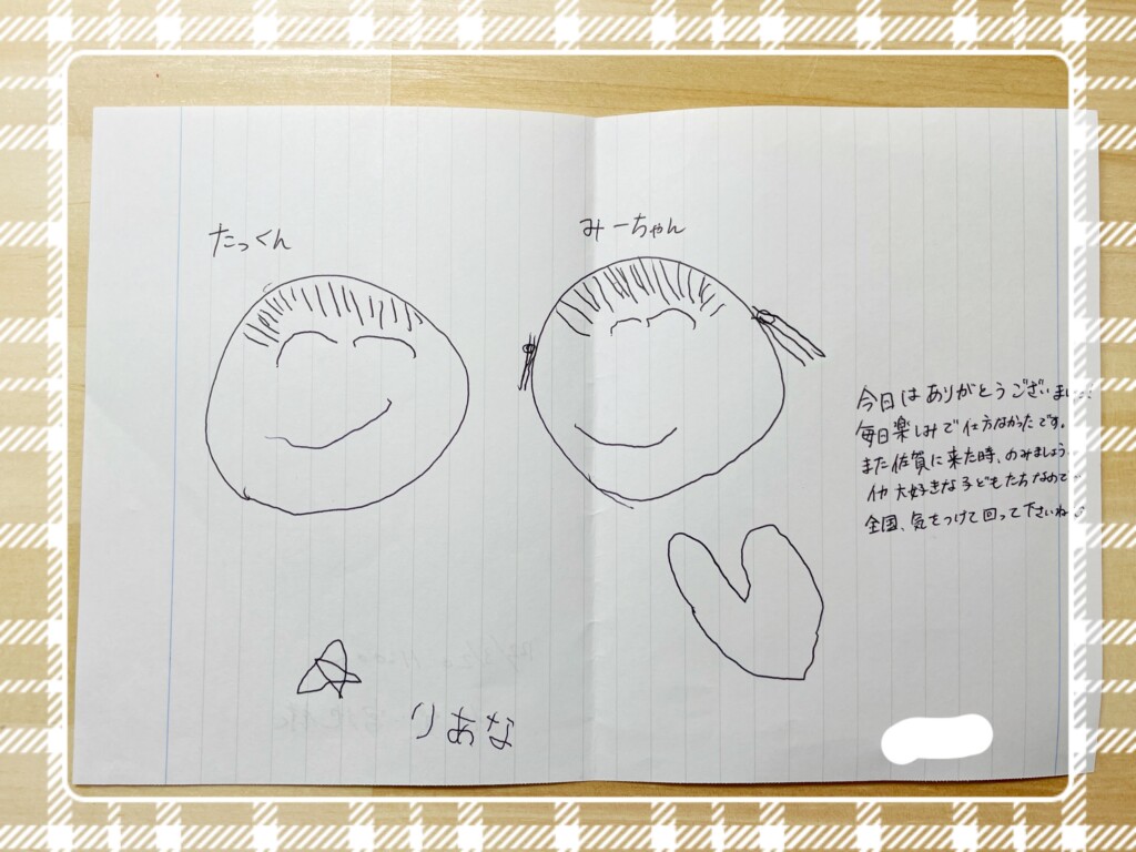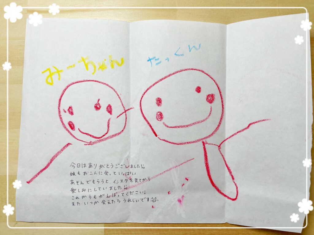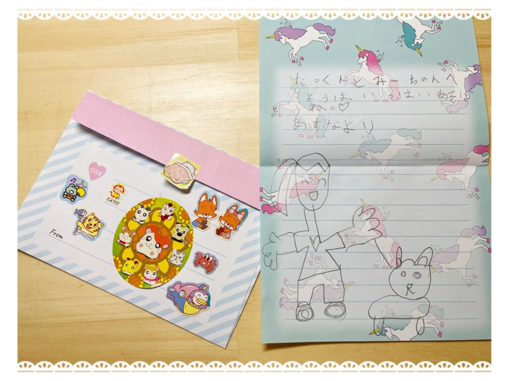 たっくんとみーちゃんに「描いてきたよ」とたくさんのお手紙や絵をもらいました♪
